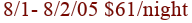 nauticagal Posted July 19, 2005 Report Posted July 19, 2005 We decided to add on an extra day to our vacation and placed our bid on July 15, 2005.I decided to bid a little lower than the $65/night which was the lowest bid that was accepted for the previous nights. Bid $61/night for a 3* in Downtown Norfolk...accepted!Sheraton Norfolk Waterside I'm a little upset because this is a nicer hotel than the Radisson, but at least the Radisson has free parking.Your Offer Price: $61.00 Number of Rooms: 1 Number of Nights: 1 Subtotal: $61.00 Taxes & Service Fees: $16.03 Total Charges: $77.03
