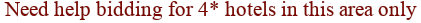 AaronJB Posted August 29, 2012 Report Posted August 29, 2012 Welcome to Betterbidding. :)What would be your desired budget per night for this stay?Thank you for using the site's HOTWIRE or PRICELINE links to start your purchases and searches.