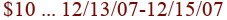 $10 ... 12/13/07-12/15/07