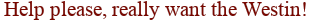 Triplehelix Posted July 17, 2009 Report Posted July 17, 2009 Hi guys,I have a bit of a dilemma.Hotwire has a room at 89$/night for 4* in Ottawa and from betterbidding, it seems they only have 2 4* Hotels which are the Westin and Mariott. So I basically have a 50% chance of getting Westin.Priceline on the other hand has like 3 or 4 four star hotels, but someone on on this board placed a bid for 70$ earlier this month and got the Westin.What do you guys suggest I do?The Hotel room is for my parents when they come down next weekend and I've heard excellent things about the Westin but I don't want to pay the regular price :)Thanks