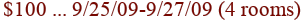 kim04 Posted August 14, 2009 Report Posted August 14, 2009 September 25 for 2 nights, 4 roomsWinning bid of $100 per night, per room on Priceline.It was immediately accepted so I might have started the bidding too high. Rooms on the website for that date are quoted as $186 CAD.